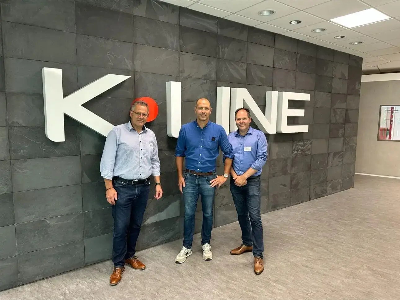 Sébastien Guiriec (au centre) en visite chez le fabricant de menuiseries extérieures K-Line